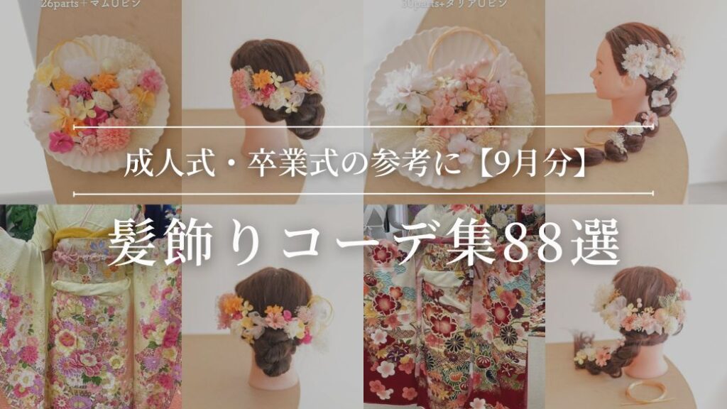 【9月の髪飾りコーデ88選】振袖の色別に見る成人式・卒業式ヘアアレンジまとめ|大阪高槻本店・オンラインオーダー