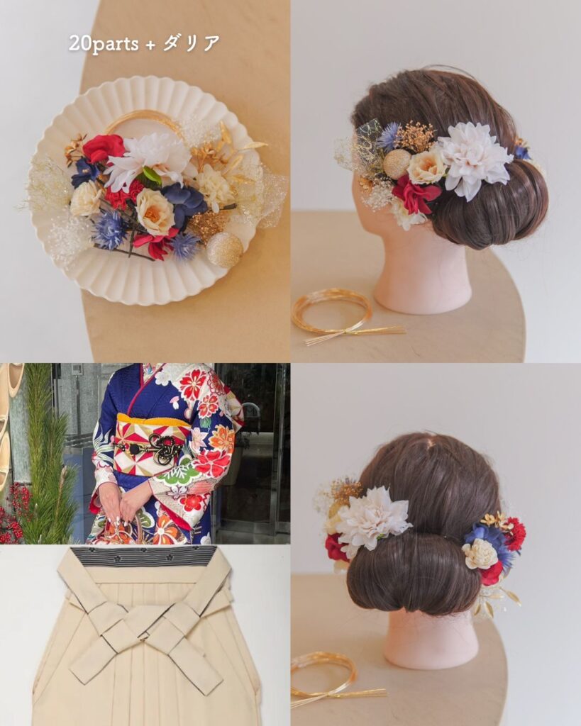 卒業式・謝恩会に 2025 5/26 Catalog 2025年5月26日 プラン 大阪高槻本店 コーディネートプラン 20parts オプションパーツ ダリアUピン Catalog 20パーツ ゴールド シニヨン 水引 白系袴 白袴 赤 青 青系振袖 よかったらシェアしてね! URLをコピーしました! URLをコピーしました!