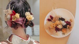 ドライフラワー・プリザーブドフラワー・造花・水引・リボンから自由に選べる、”わたしらしい髪飾り” を作れるお店。