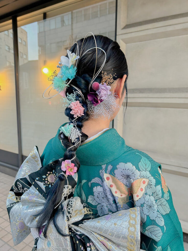 【成人式ヘア】20パーツ×水引×編み下ろしで華やかに