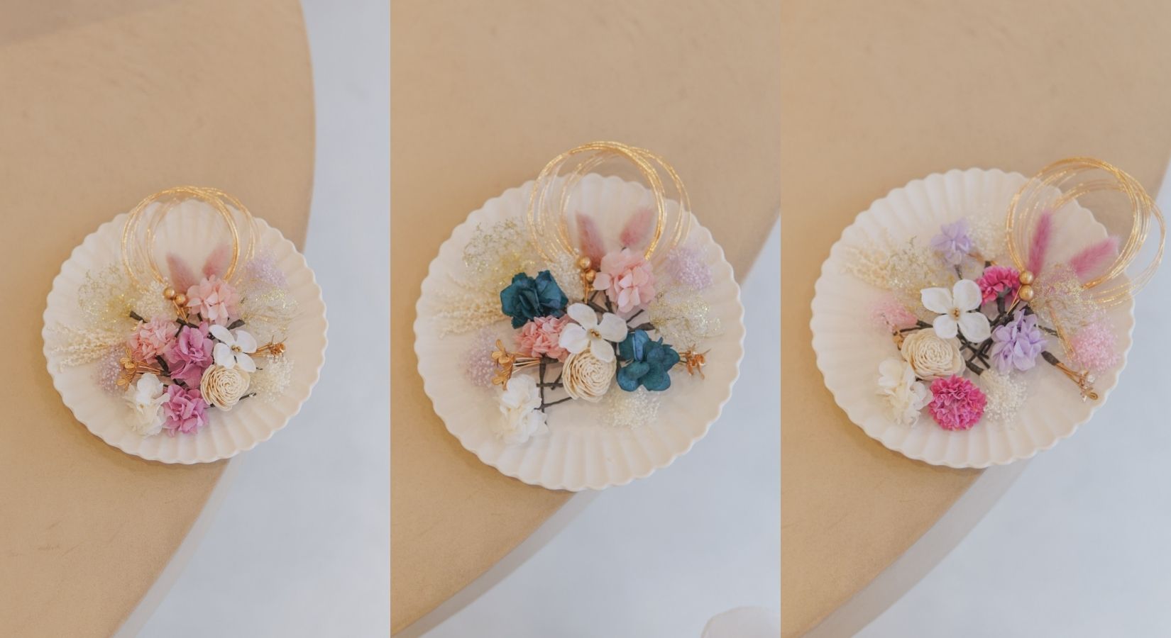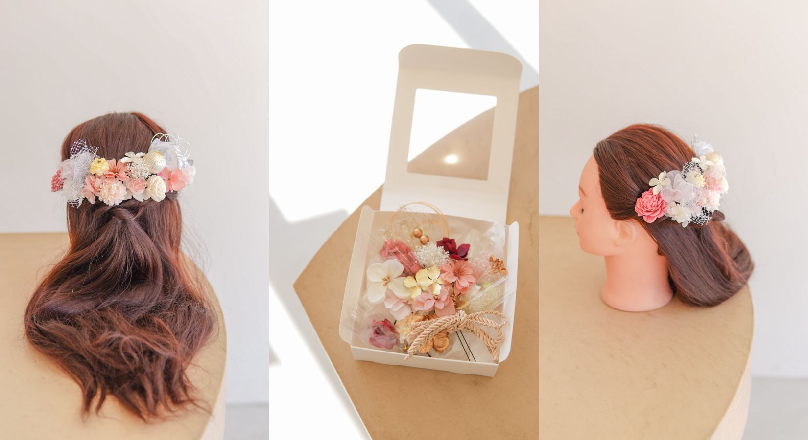 決定した髪飾りデザインでマネキンでの着用イメージを撮影後、発送させていただきます。