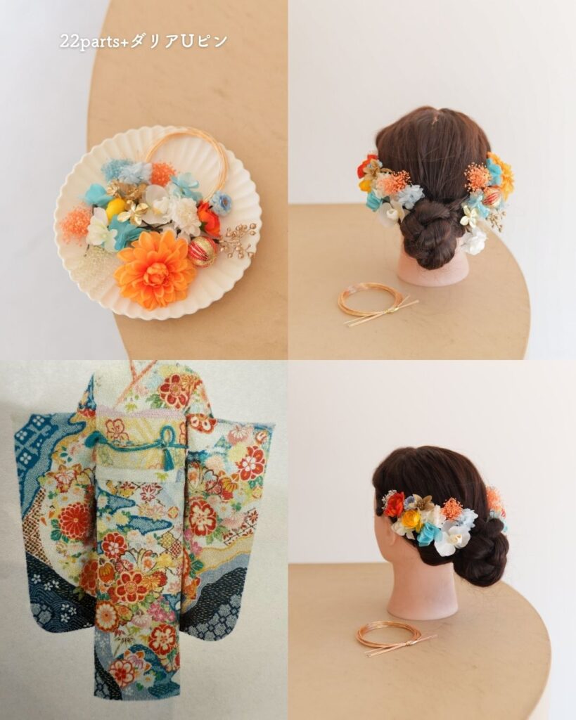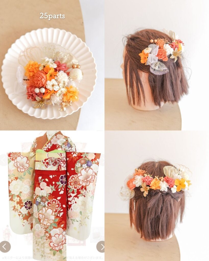🧡 オレンジ・イエロー系振袖 × 髪飾りコーデ