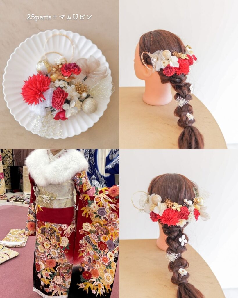【9月の髪飾りコーデ88選】振袖の色別に見る成人式・卒業式ヘアアレンジまとめ|大阪高槻本店・オンラインオーダー