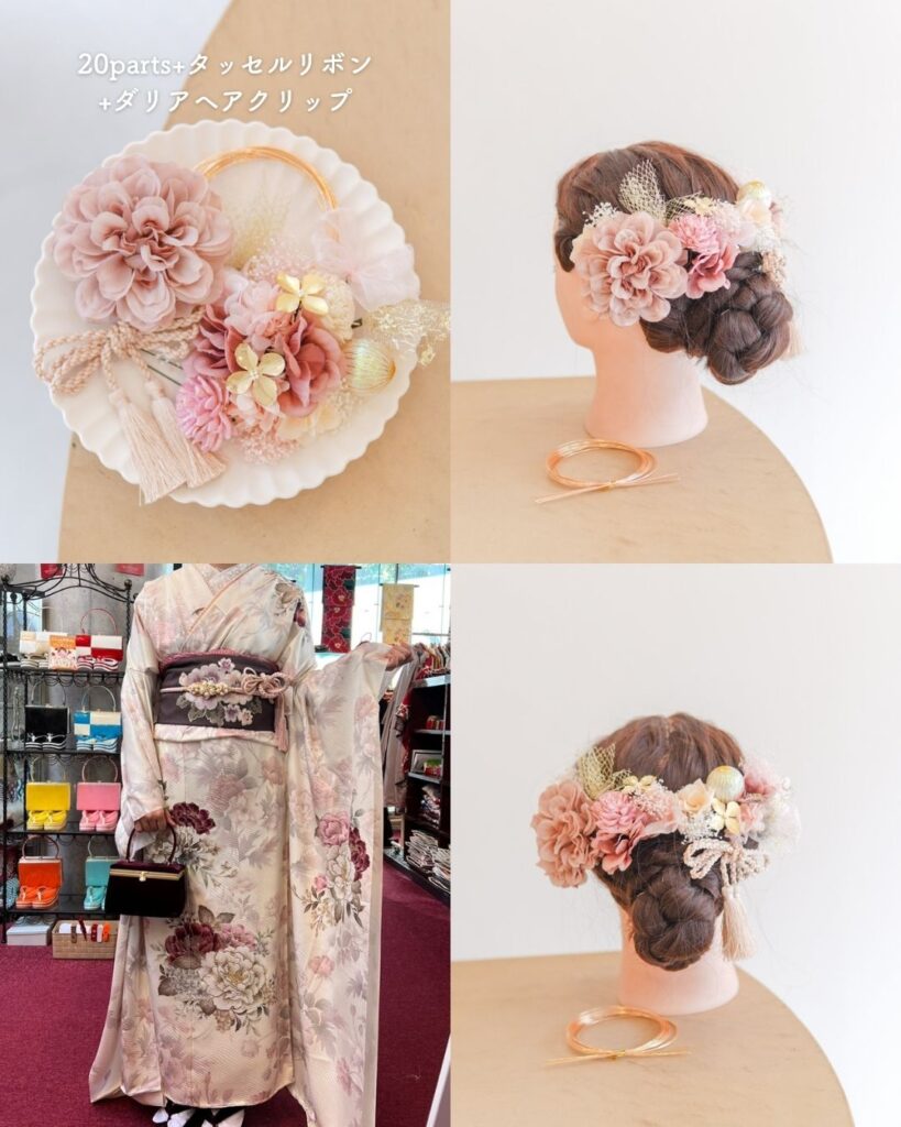 🌸 ピンク系振袖 × 髪飾りコーデ