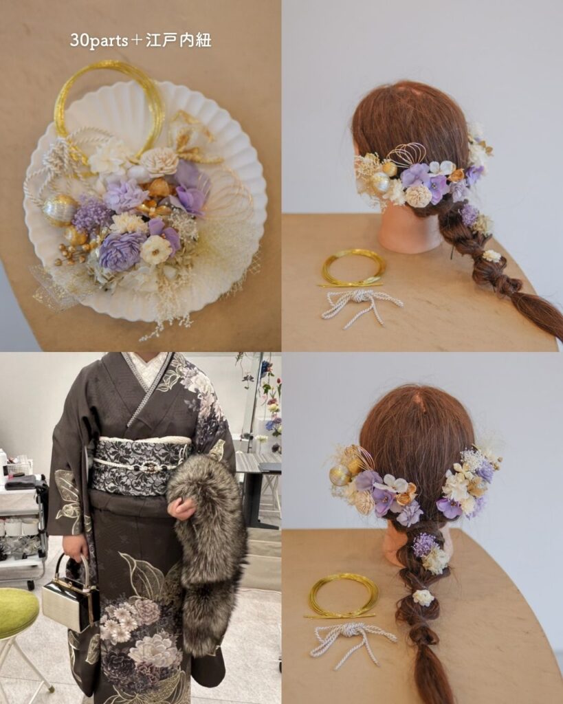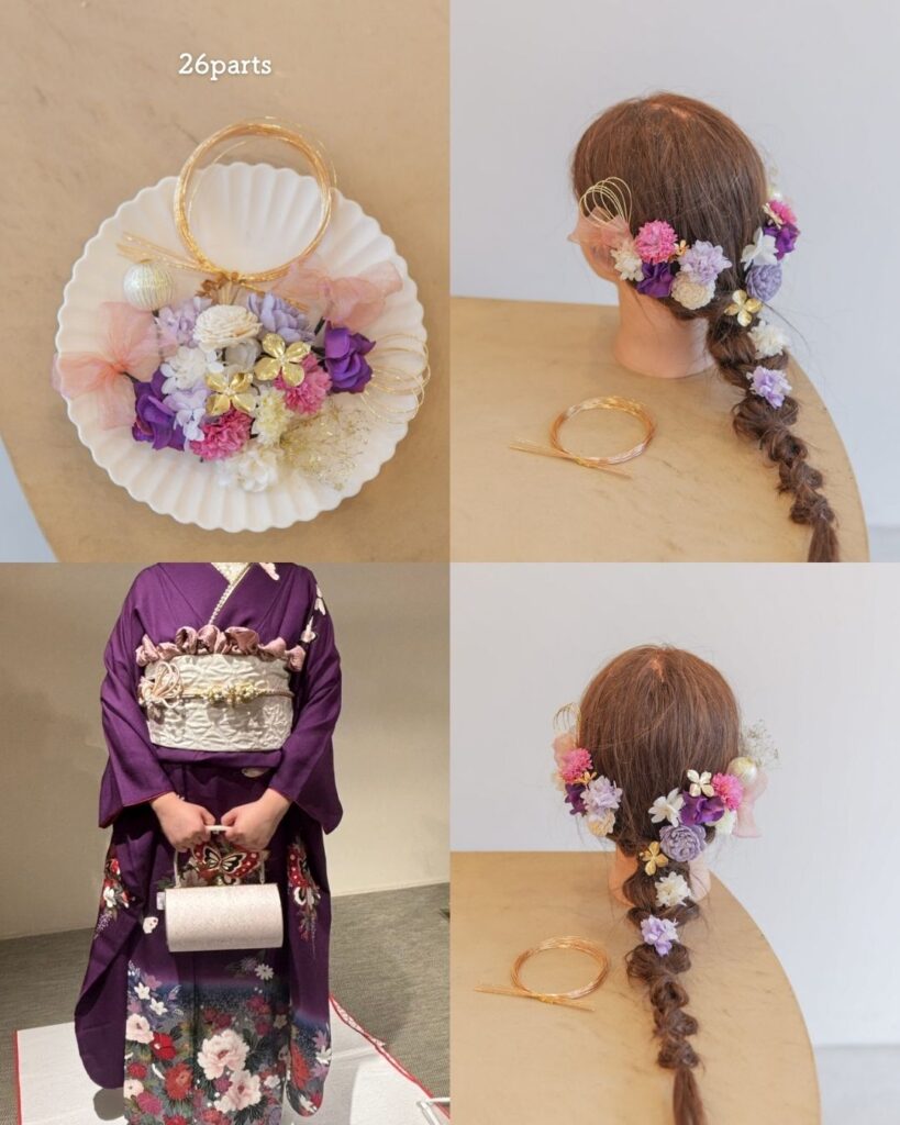 💜 紫系振袖 × 髪飾りコーデ