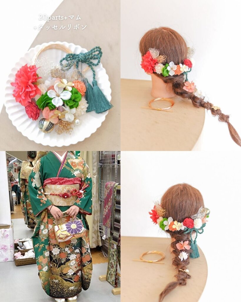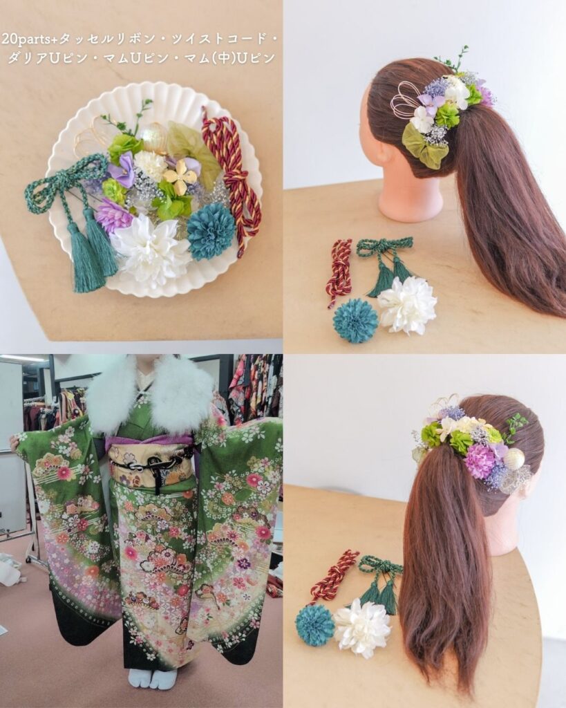💚 緑系振袖 × 髪飾りコーデ