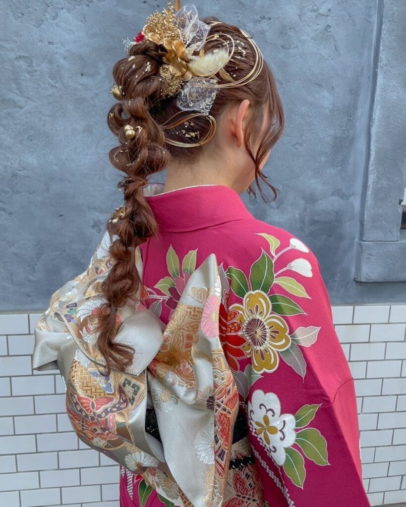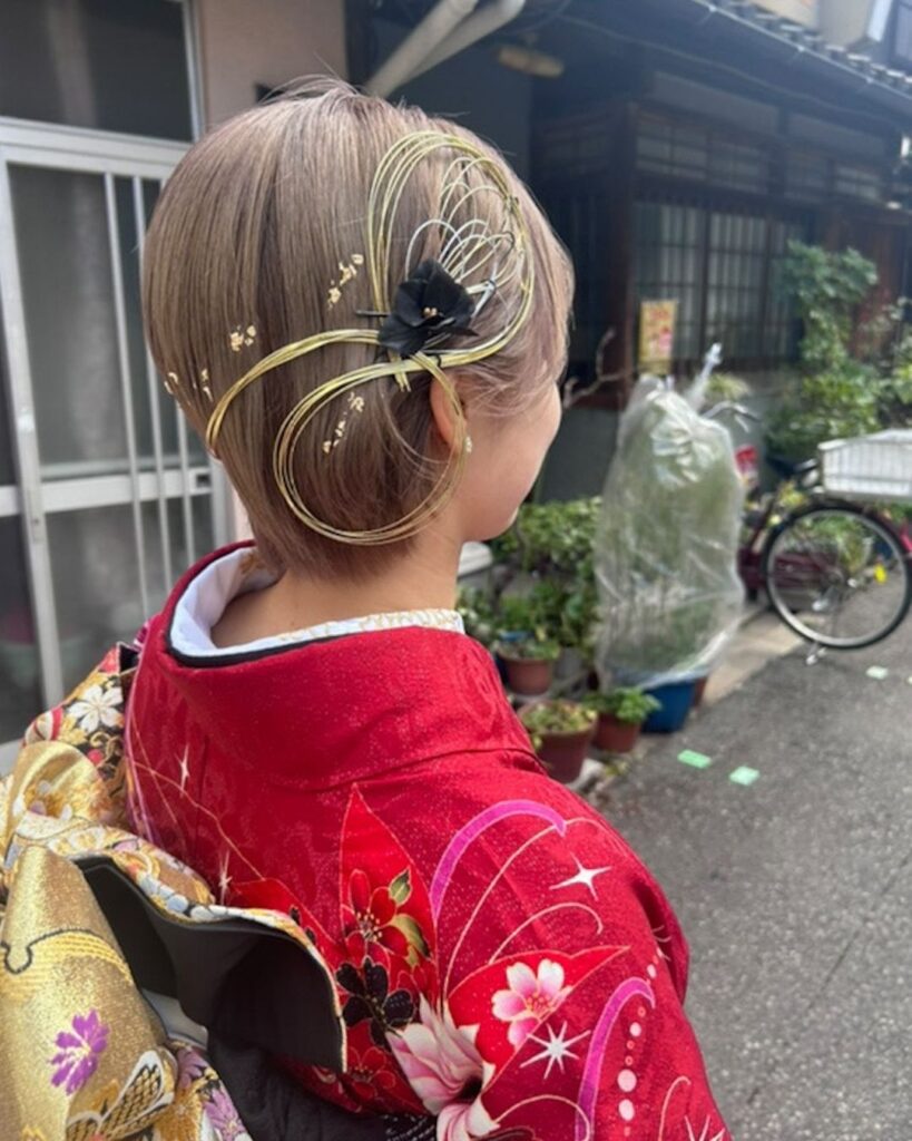 髪型別|成人式の金箔ヘアが可愛く見えるデザイン